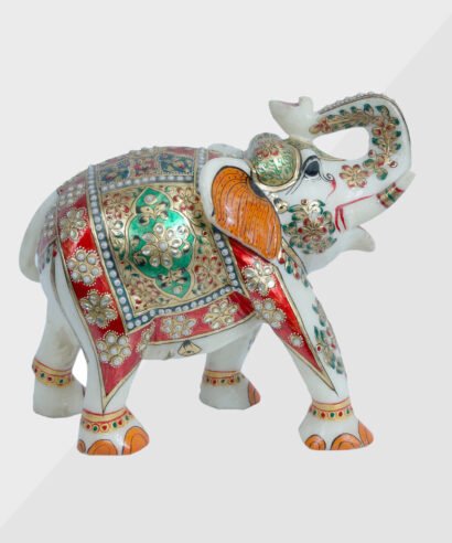 Marble Inlay figurines like Elephants & Other Idols made by Indian craftsmen with Pietra dura work on it makes it a very special product which can be used for room decoration purposes or to gift to your someone special. Elephants are considered as symbol of lord Ganesha who is God of prosperity. The trunk of elephant is a sign of Good Luck. Elephant are symbol of strength, power, wisdom, fertility and are often used to energize certain areas of life for positivity. In many cultures, elephants represent strength, power, wisdom, longevity, stamina, leadership, sociability, nurturance and loyalty. Placing a statue or a pair of elephant at front door is believed to bring good luck, protection and strength. Within children’s room it will strengthen their knowledge, and when placed in office it provides growth in career to name a few. Elephant statues are therefore popular worldwide and can be seen in many old monuments in form of either pictures, carving or statues.