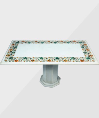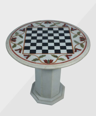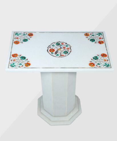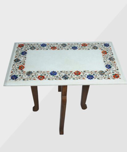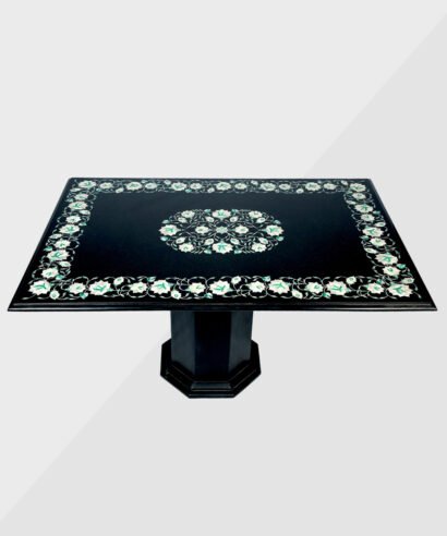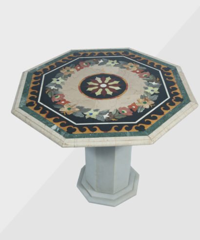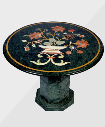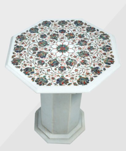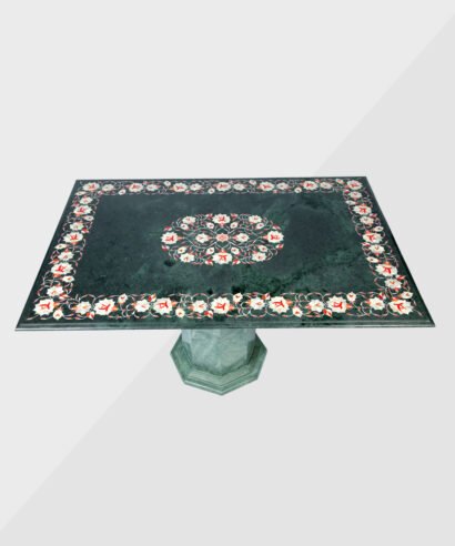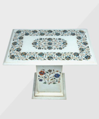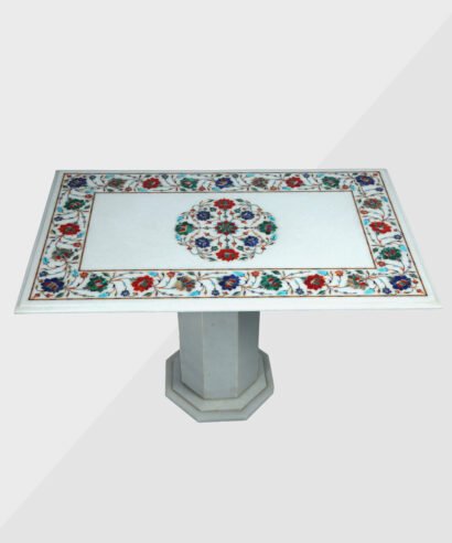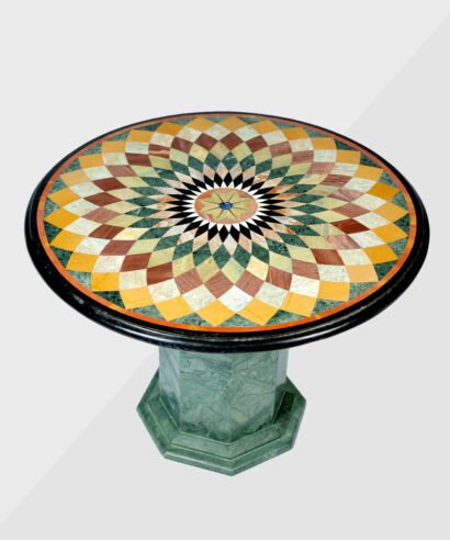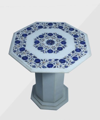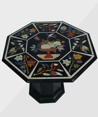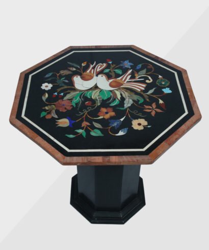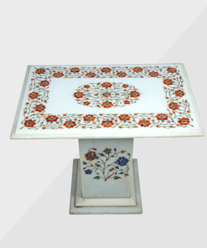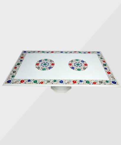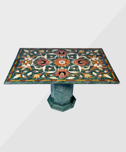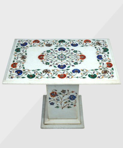 Table Tops made by the artist who are the descendant of those craftsmen who built TajMahal in 17 th century. They make this Table Top with love and care and patiencefully The art used in making marble inlay table is called Inlay work or Parchinkari or Pietre dura and wonderful floral pattern, Italian, geometric decorate designs utilizing semi-valuable stones like lapis lazuli, malachite, turquoise, coral, cornelian, shell, mother of pearl, Jasper and Italian stones inlaid in Indian white marble, black marble, Indian green marble (Baroda green), Indian Black Kadapa Stone etc. there are many kinds of different shapes are made of table tops like Round Table top, Octagonal Table Tops, Rectangle / Dining table tops, Square Table tops, Chess Table tops, Taj Mahal Table tops, Custom Designs Table tops also make plain and inlay marble Table top Base and Stand. These different kind of table tops can be used as dining tables, coffee tables, Center tables, conference tables, chess boards, reading tables, bar tables, Garden table, side and corner tables or any other use as per the indoor and outdoor decorative materials. These tables also looks very beautiful in the lap of nature like can be place in gardens. Marble is stain free it remains undamaged in heavy temperature, you just need wash with simple soap water and remove the dust form it regularly.